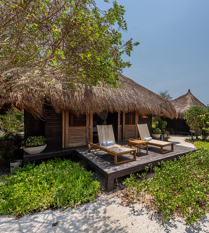 Wake up overlooking the Caribbean Sea in your rustic beach bungalow
