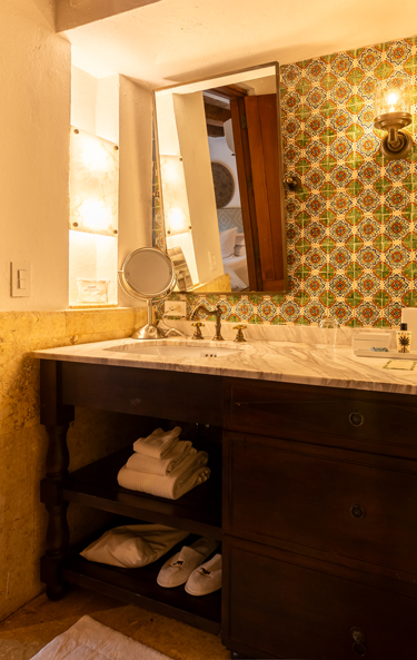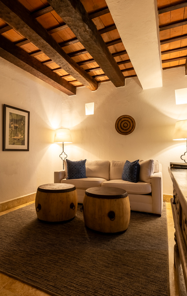 The wooden-beamed ceiling and furniture of the epoch immerse you in our culture while you relax into the moment with all of the modern comforts.